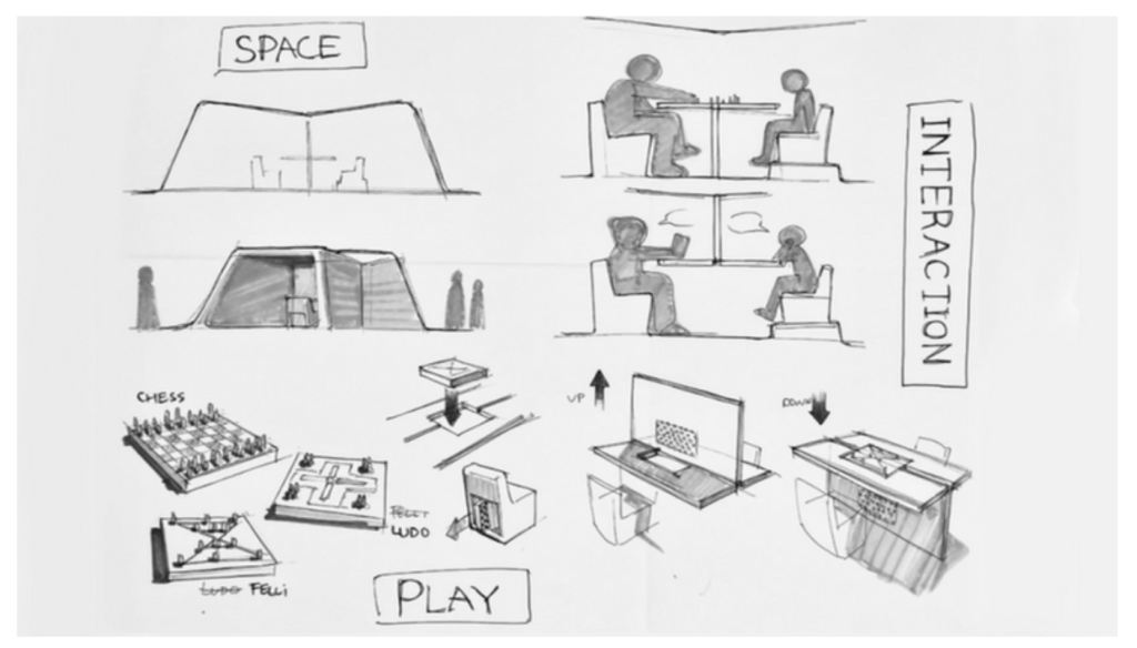 The final concept is a public bench featuring a movable divider that allows users to choose between anonymity and visibility. This design encourages interaction and openness between strangers from different generations.
